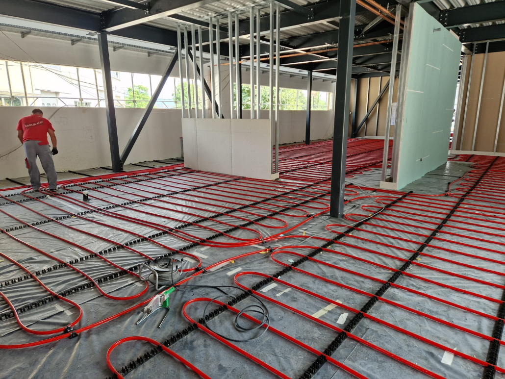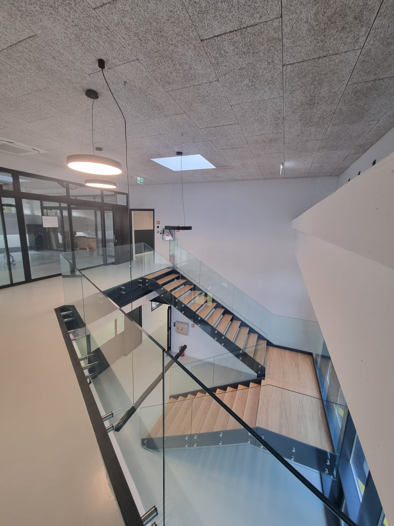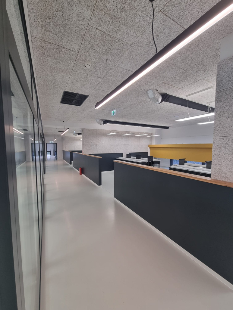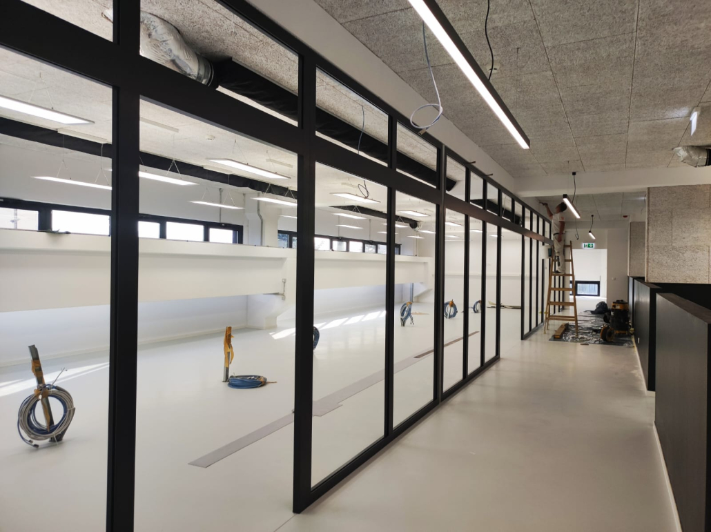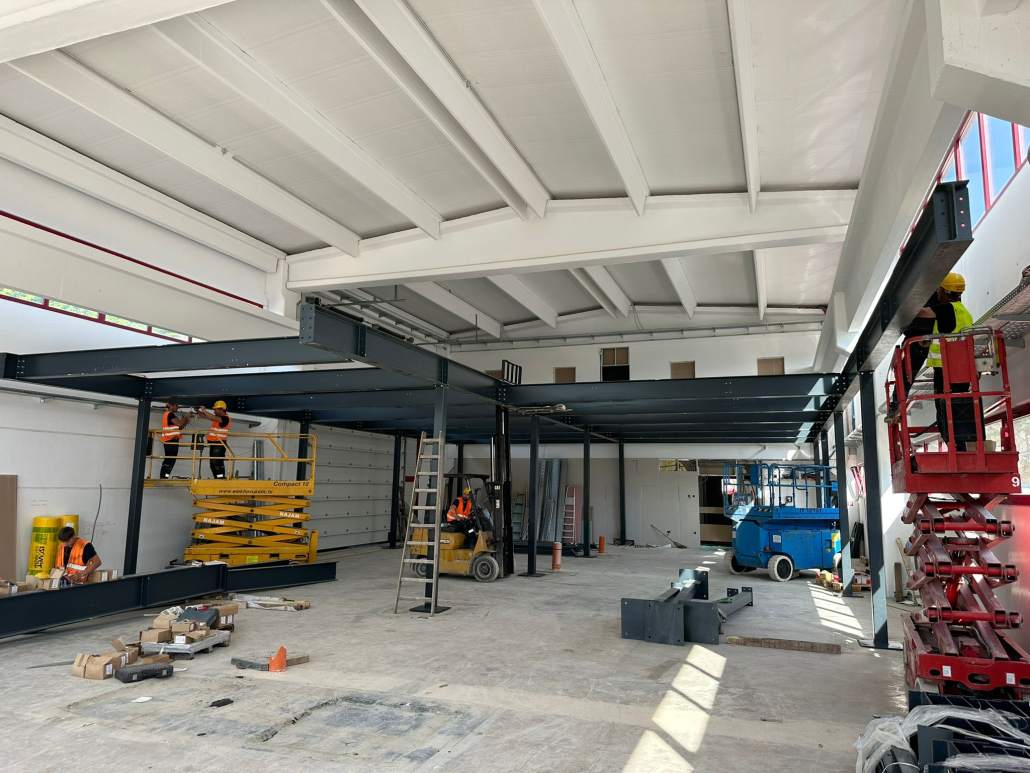 Zadržano je zatečeno stanje konstrukcije postojeće građevine bez zadiranja u njenu nosivu i krovnu konstrukciju. Unutar dvoetažnog zračnog prostora postojeće radionice ugrađena je nova međukatna čelična skeletna konstrukcija koja je dilatirana od postojeće konstrukcije zgrade. Time je povećana ukupna površina radnog prostora građevine sukladno potrebama proširivanja djelatnosti i poslovnih procesa investitora.