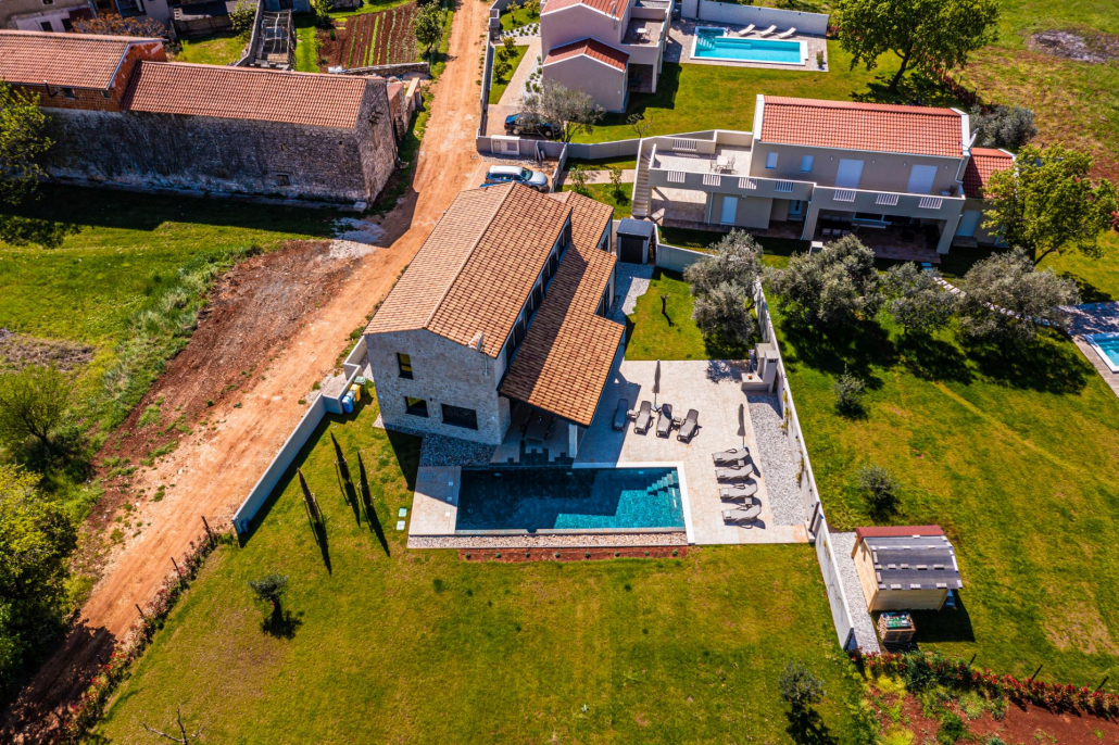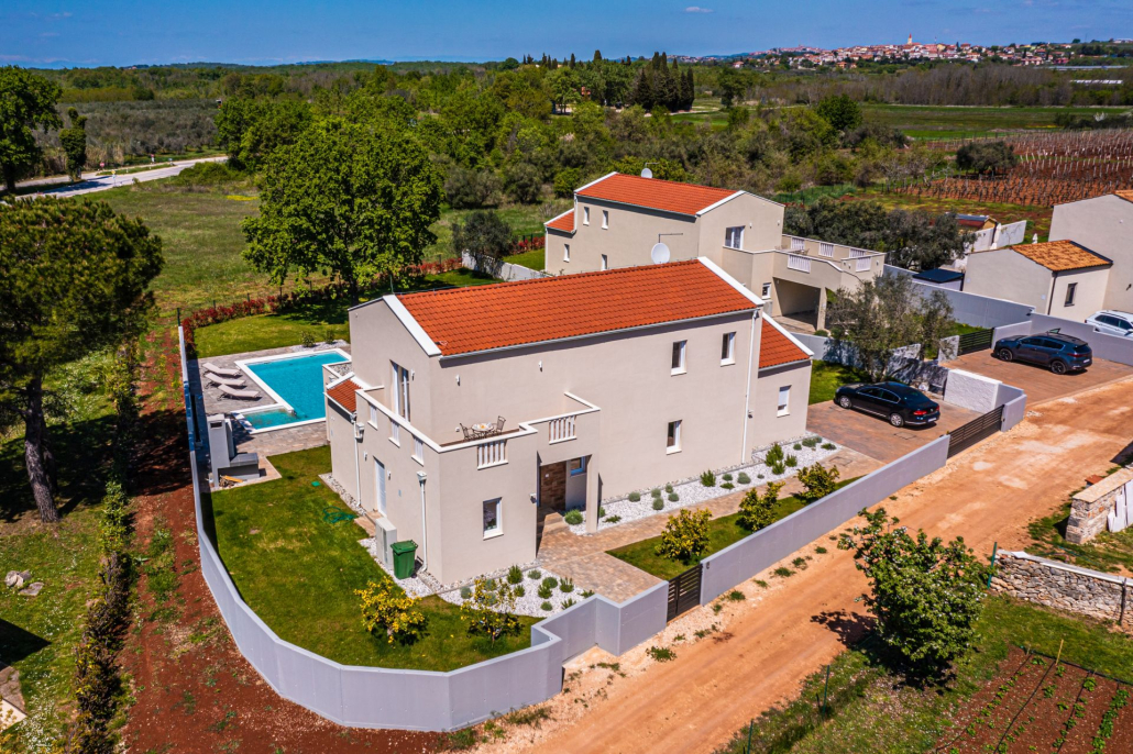 U naselju Kovri, Brtonigla izgrađene su tri urbane vile sa bazenom i uređenim okolišem. Vile su katnosti P+1, svaka sa dva parkirna mjesta.
